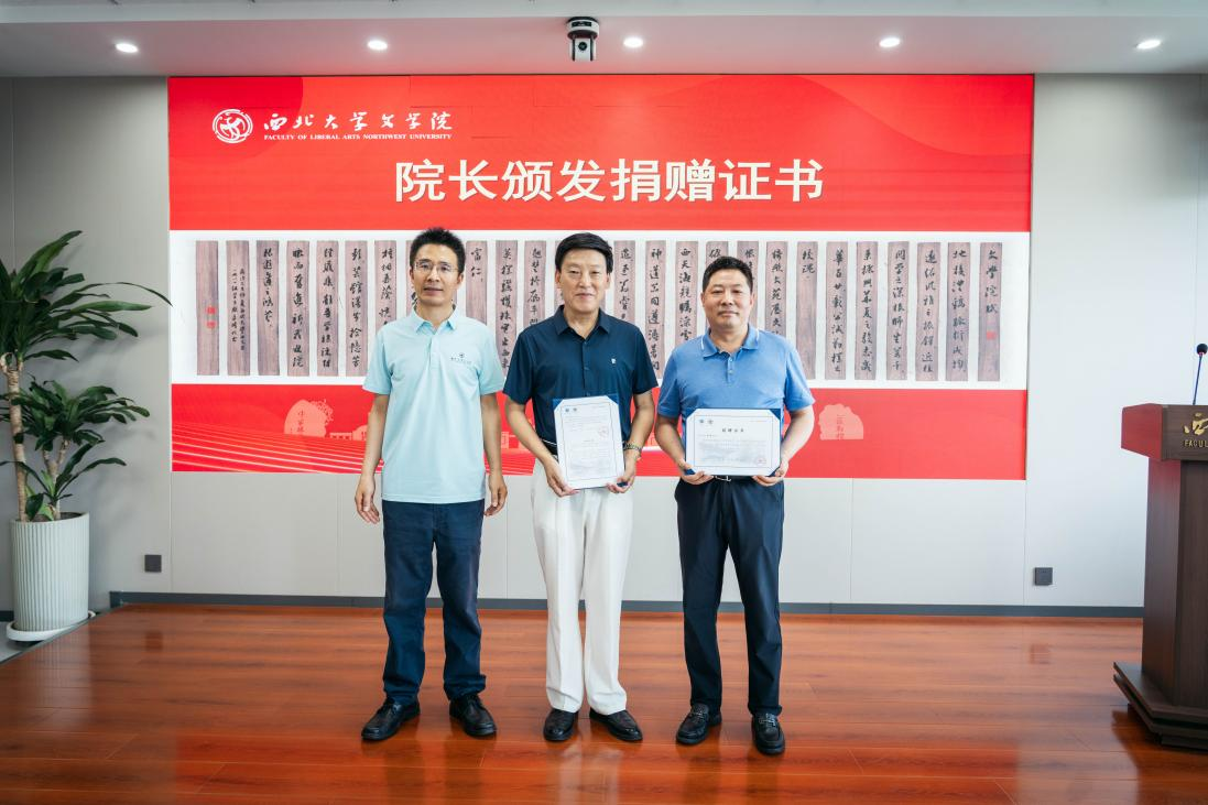 谷鹏飞院长向岳峰教授及1981级校友代表颁发了捐赠证书,并向校友们的深厚情谊表达了诚挚的感谢,表示《76net必赢官网赋》将成为学院文化建设的重要标志和精神象征。