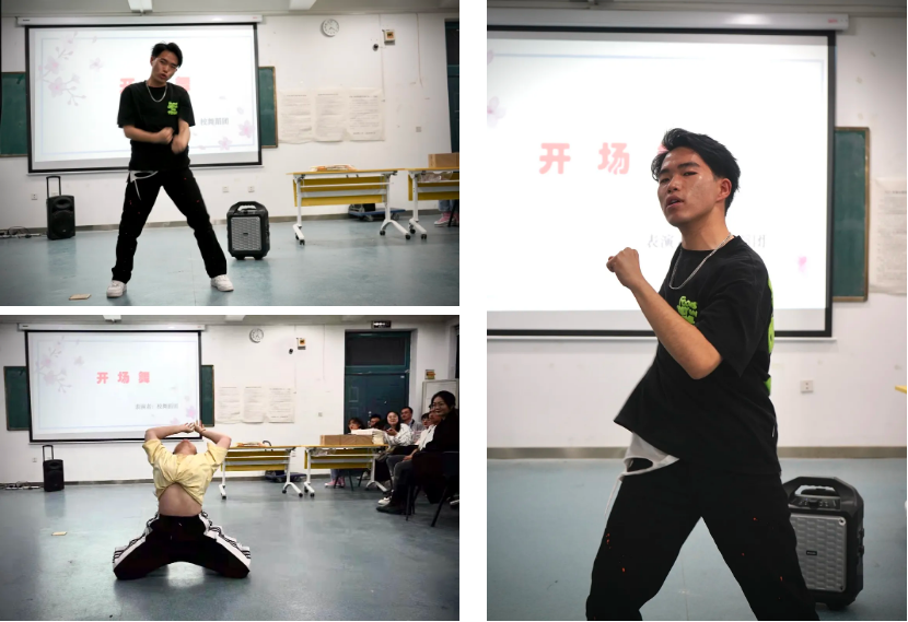 活动由校舞蹈团两位同学带来的开场舞拉开序幕,他们踩着青春的旋律,在旋转跳跃间释放着满腔热情,动感的舞步惊艳全场,瞬间点燃了同学们的激情。